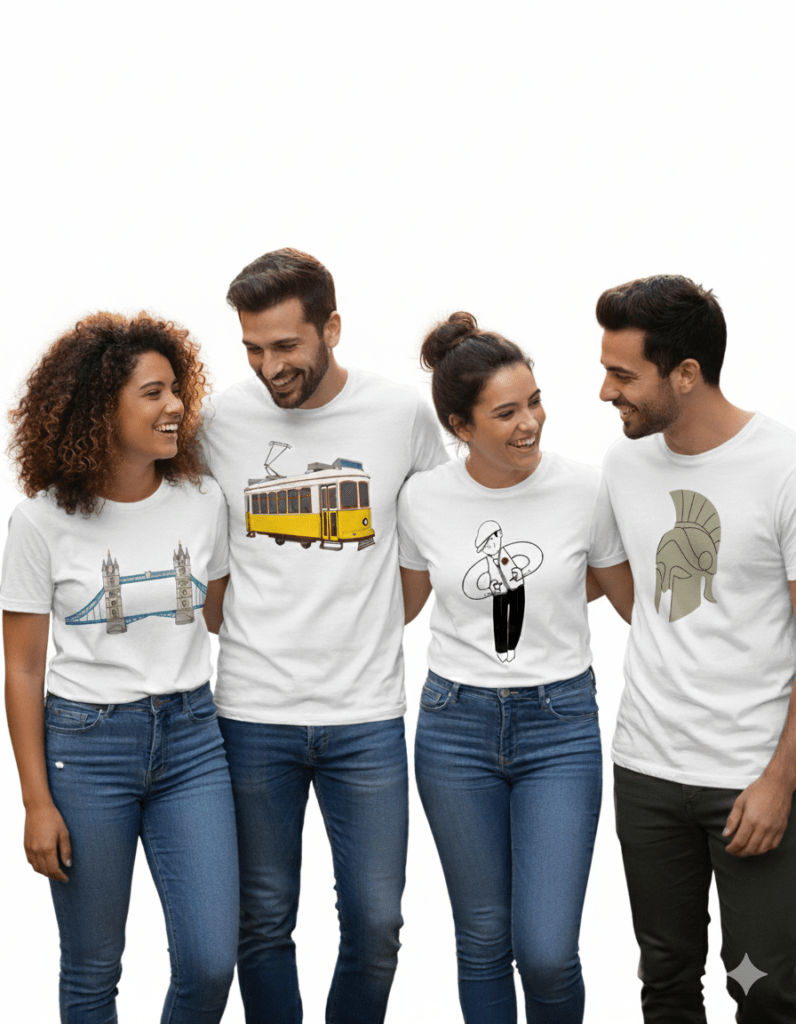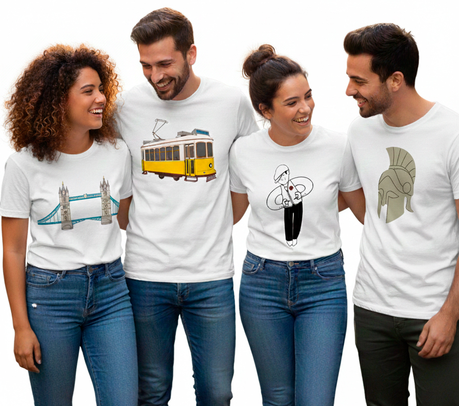 En Capital-T cada camiseta es un recuerdo que puedes llevar contigo: diseños exclusivos inspirados en monumentos, símbolos y rincones icónicos de Europa. Calidad, estilo y espíritu viajero se unen en prendas únicas pensadas para quienes sienten que cada ciudad cuenta una historia. Descubre tu favorita y llévala siempre contigo.